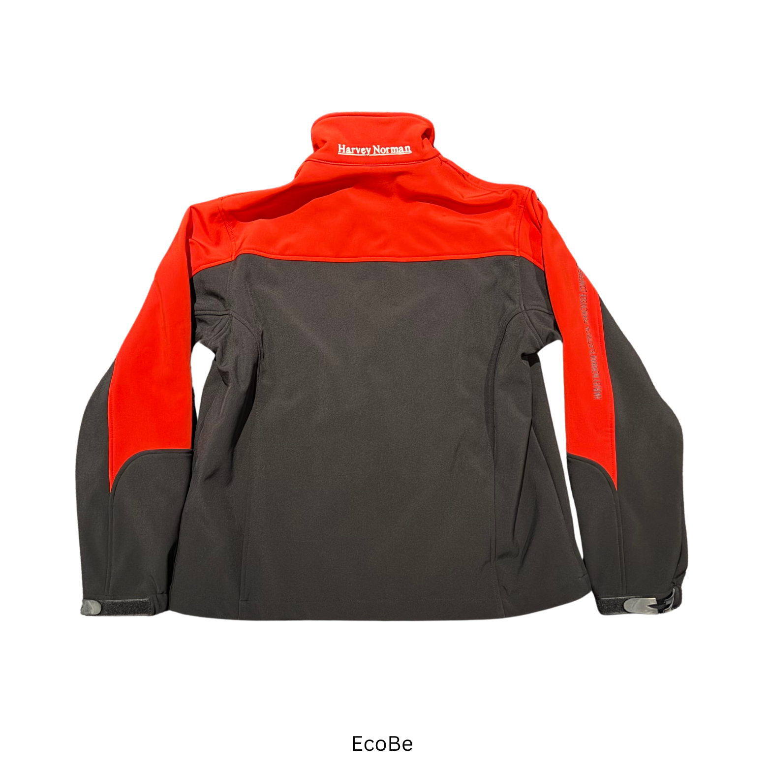 Features a black and red color-block design with a front logo and a branded print on the back collar.